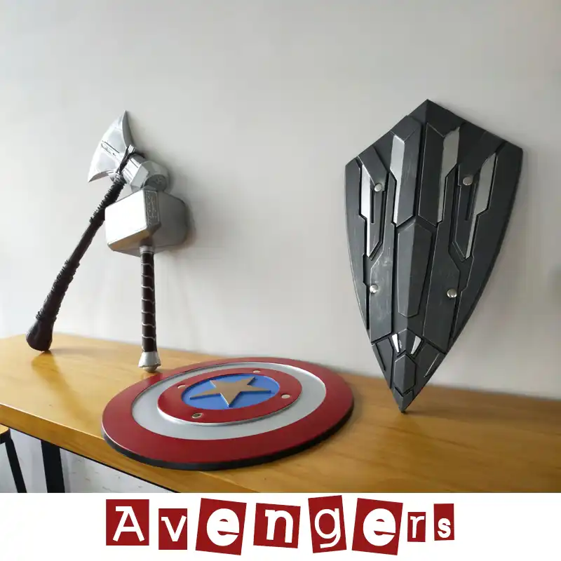 Hot Promo 4ec5 Avengers Endgame Superhero Weapon Model 32cm Captain America Shield Toy Halloween Cosplay Prop 28cm Thor Hammer Model Fy Seamon Co